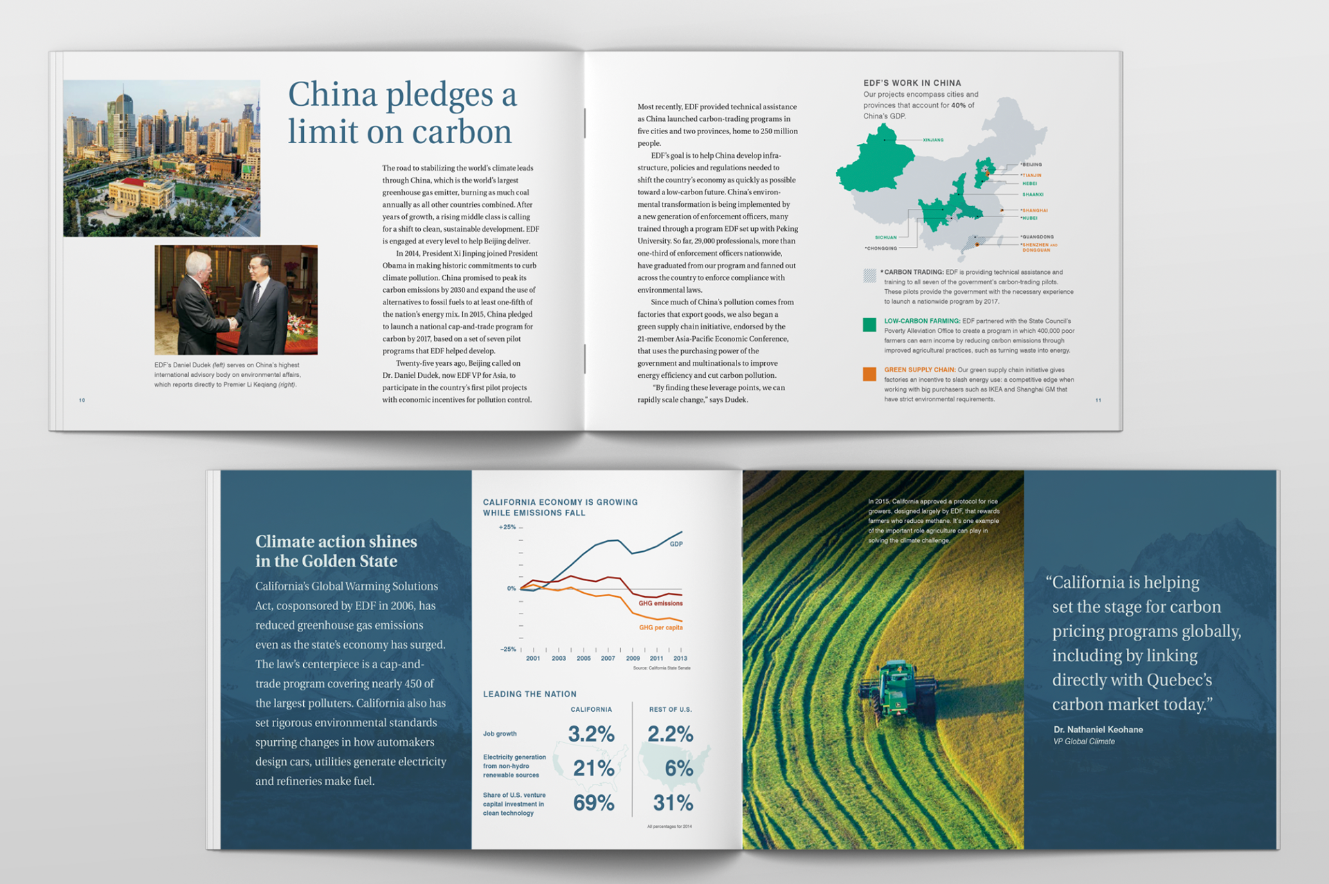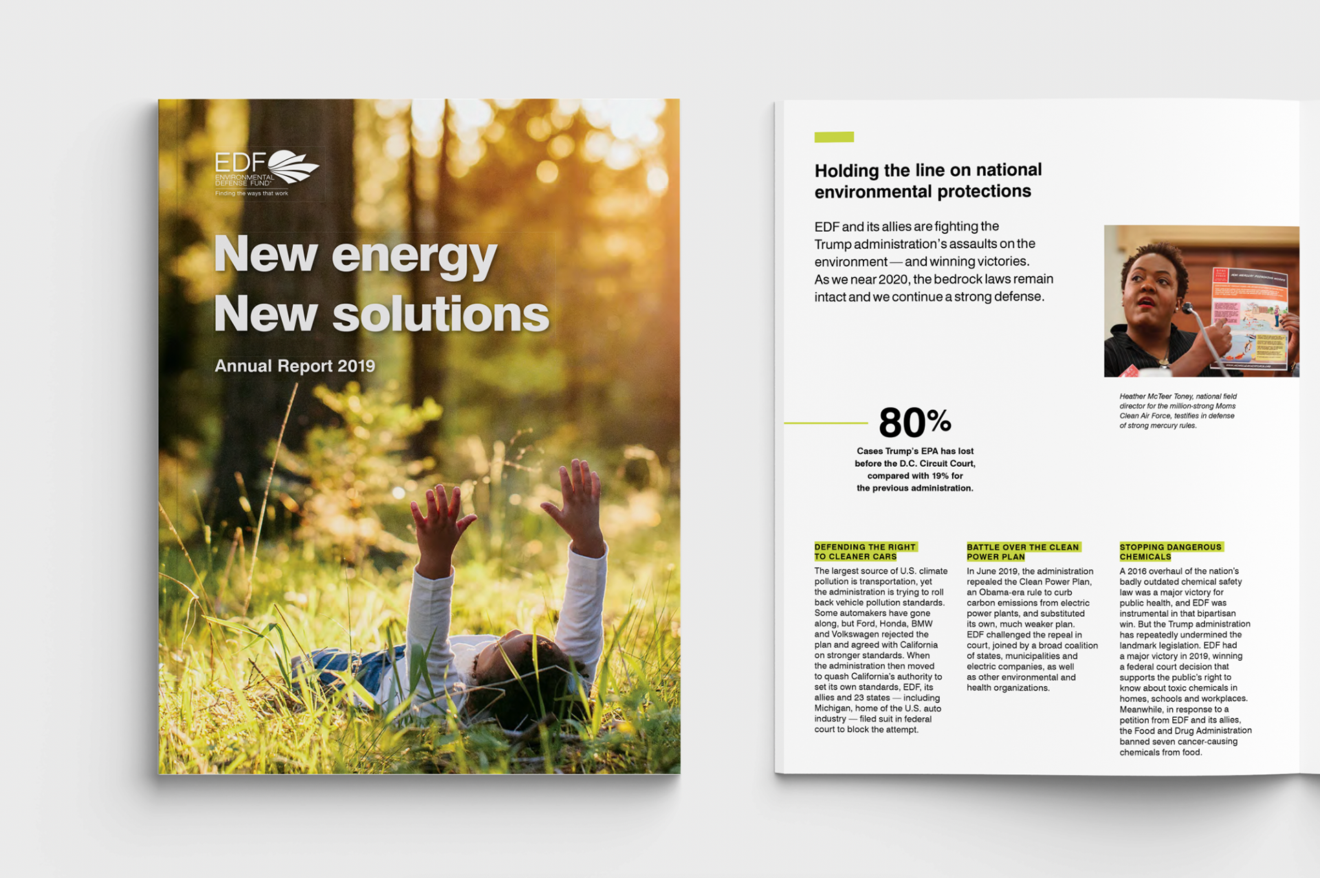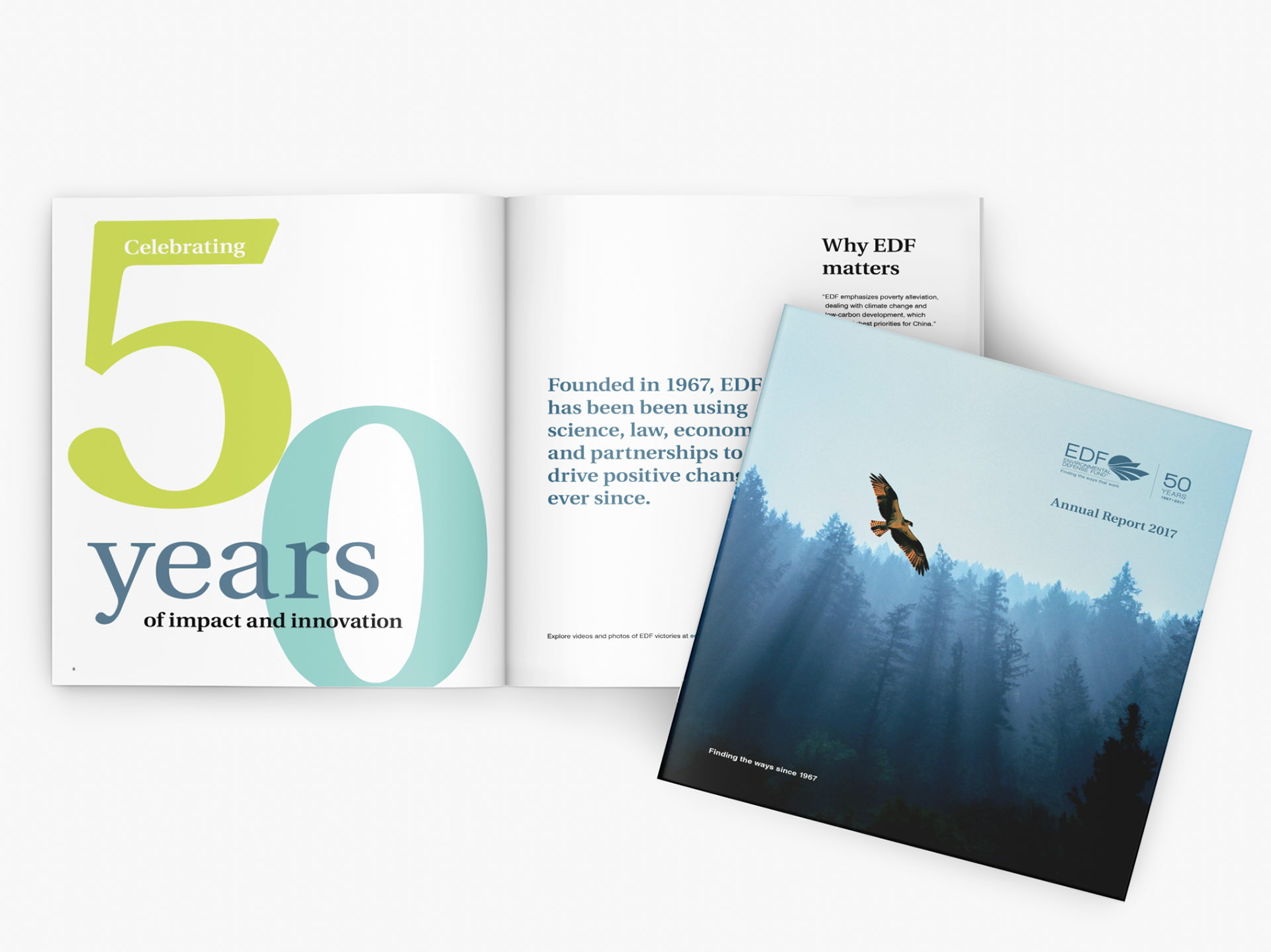Environmental Defense Fund's flagship fundraising piece. Reaching membership, major donors, and trustees with a distinct design every year, built around that year’s theme and involving original photo shoots, custom illustration, and close collaboration across the organization